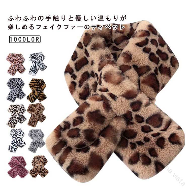フェイクファー素材で柔らかく暖かい厚手ティペット マフラー レディース向けヒョウ柄アニマル柄ストール ネックウォーマーにも最適