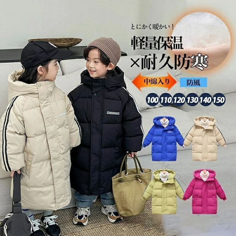 ベンチコート キッズ 中綿入り 中綿コート ジャケット コート フード付き ユニセックス 袖ライン入り 中綿パーカー アウター 子供服 女の子 男の子 ジュニア 暖かい ベビー服 ジャンパー 防寒