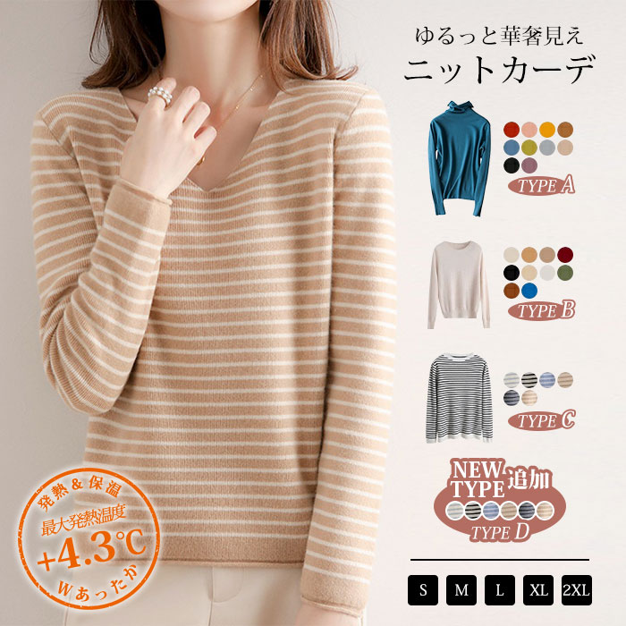19%OFFクーポン カシミヤタッチ ニット トップス 極暖 tシャツ vネック クルーネック セーター レディース タートルネック 薄手 洗える ハイネック ボーダー ストライプ 丸首 プルオ 無地