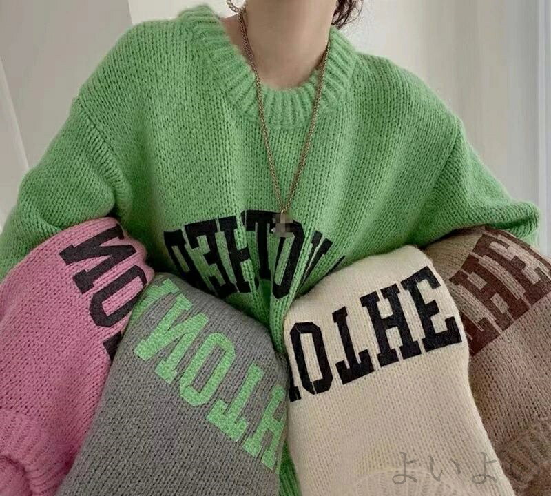 レディース トップス 冬 秋 丸首 大きいサイズ カジュアル ゆる あったかい セーター ニット ビッグ 長袖