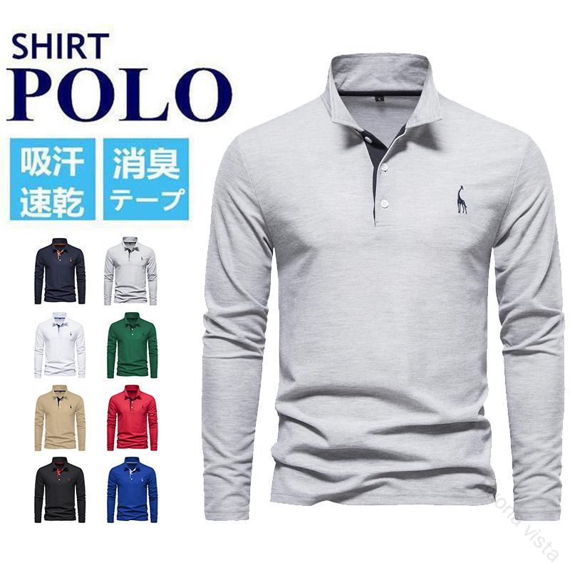メンズ用の長袖ポロシャツ ゴルフやカジュアルに最適 刺繍入りで高級感 綿素材で快適 春秋シーズン向け おしゃれな紳士服